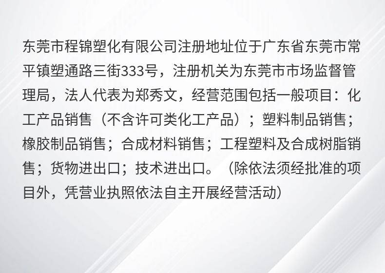 欢迎访问东莞市程锦塑化有限公司